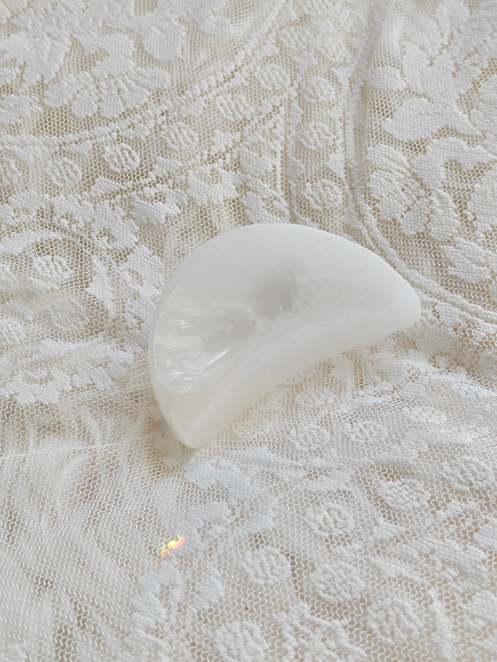 Seleniitti on puhdistava ja lataava mineraali. Sen uskotaan edustavan puhdasta valoa ja värähtelevän enkelten taajuuksilla. Seleniitti vahvistaa yhteyttä korkeampaan tietoisuuteen ja universumiin. Jos sinua vaivaa raskaat ajatukset nukkumaan käydessä, kannattaa seleniitti asettaa yöpöydälle. Se saattaa auttaa sinua pitämään mielenmaiseman unta edistävänä.
